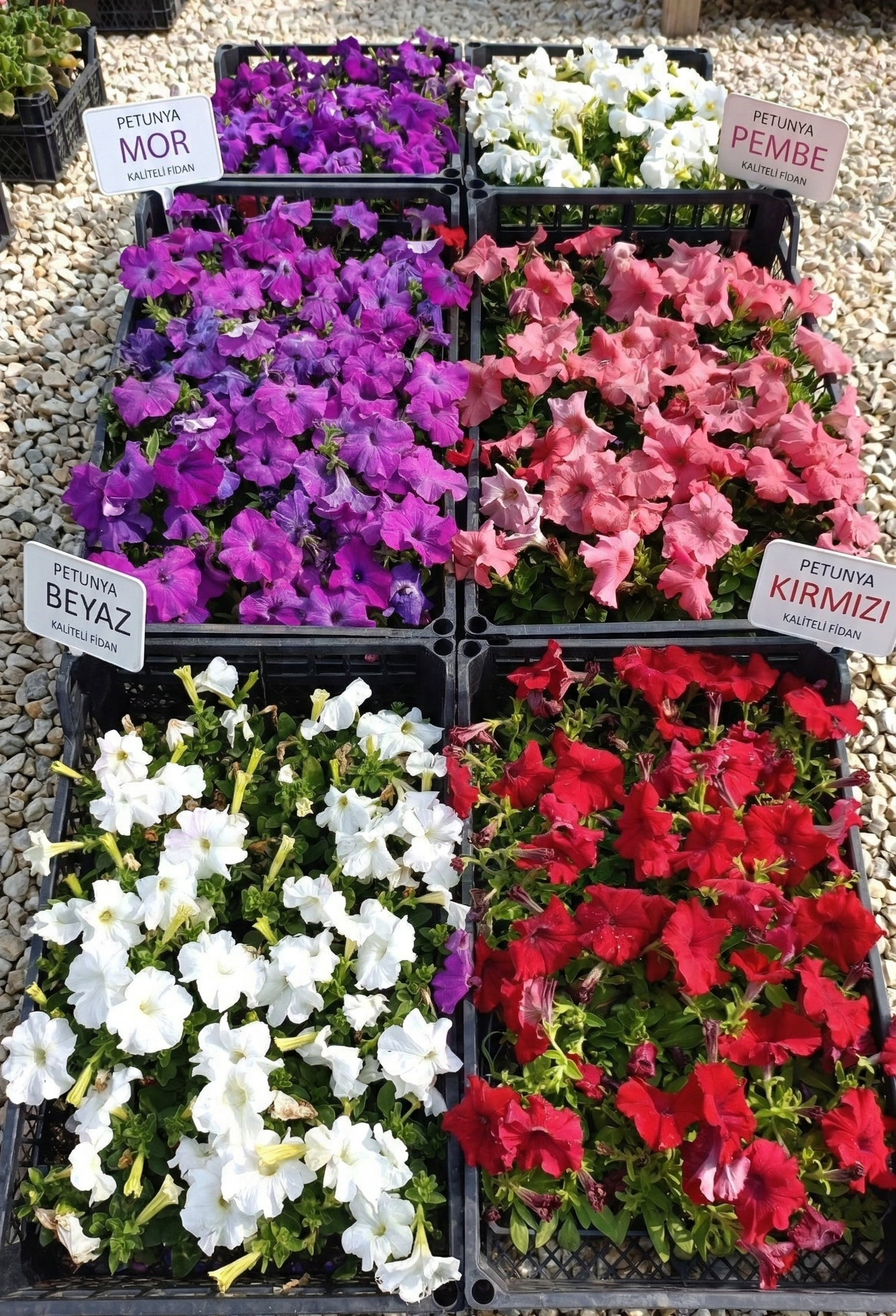 Açık pembe, canlı kırmızı ve saf beyazın uyumuyla tasarlanmış Petunya çiçekleri, bahçenize veya balkonunuza anında görsel bir enerji ve estetik katar. Peyzajda doğal bir armoni yaratırken, renklerin kontrastı hem dikkat çeker hem de ortamda huzur ve canlılık hissi uyandırır.